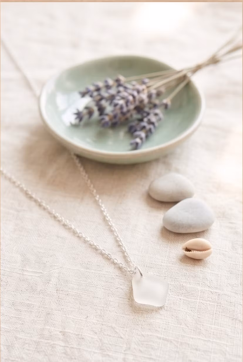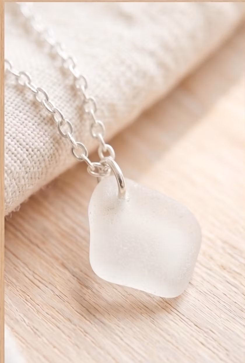 En mjukt slipad bit strandglas, formad av havet och polerad av tidens gång.